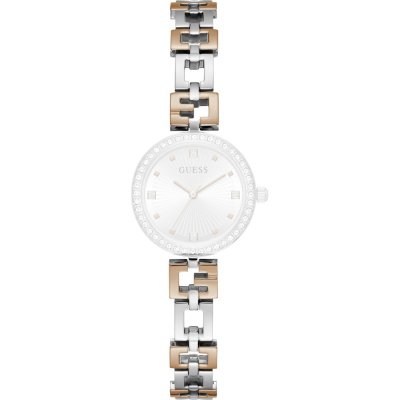 Dieses Guess Uhrarmband ist aus edelstahl gefertigt und wird mit stahlstifte an der Uhr befestigt. Das Band hat eine Breite von 10 mm und wird mit einer schmuckschließe geschlossen. Das Uhrenarmband hat keine gerade Halterung, was bedeutet, dass dieses Band nur für die unten aufgeführten Uhren geeignet ist.