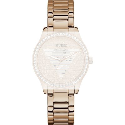 Dieses Guess Uhrarmband ist aus metall gefertigt und wird mit druckstifte an der Uhr befestigt. Das Band hat eine Breite von 18 mm und wird mit einer faltschließe mit Druckknöpfen geschlossen. Das Uhrenarmband hat keine gerade Halterung, was bedeutet, dass dieses Band nur für die unten aufgeführten Uhren geeignet ist.