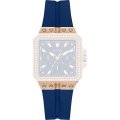Dieses Guess Uhrarmband ist aus silikon gefertigt und wird mit stahlstifte an der Uhr befestigt. Das Band hat eine Breite von 22 mm und wird mit einer dornschließe geschlossen. Das Uhrenarmband hat keine gerade Halterung, was bedeutet, dass dieses Band nur für die unten aufgeführten Uhren geeignet ist.