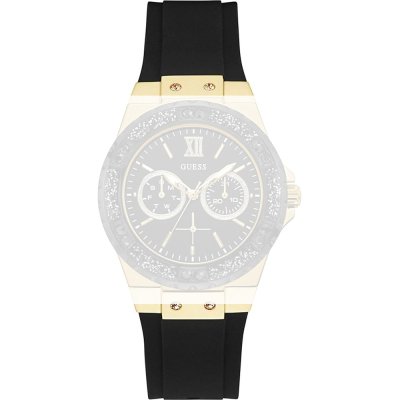 Dieses Guess Uhrarmband ist aus silikon gefertigt und wird mit druckstifte an der Uhr befestigt. Das Band hat eine Breite von 23 mm und wird mit einer dornschließe geschlossen. Das Uhrenarmband hat keine gerade Halterung, was bedeutet, dass dieses Band nur für die unten aufgeführten Uhren geeignet ist.