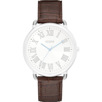 Dieses Guess Uhrarmband ist aus leder gefertigt und wird mit druckstifte an der Uhr befestigt. Das Band hat eine Breite von 20 mm und wird mit einer dornschließe geschlossen. Das Band hat eine gerade Halterung, was bedeutet, dass dieses Band für alle Guessuhren mit einer geraden Halterung geeignet ist.