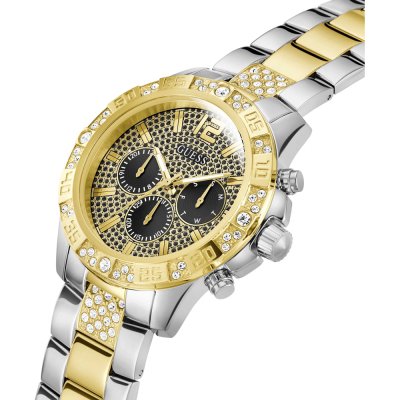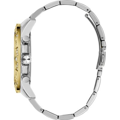 Diese Guess Uhr hat ein Edelstahl Gehäuse mit einem Durchmesser von 48 mm und ist mit einem Armband aus Edelstahl versehen.