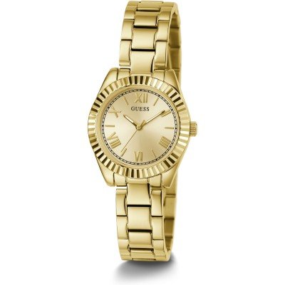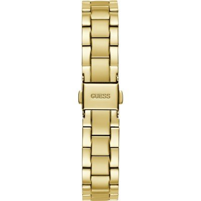 Diese Guess Uhr hat ein Edelstahl Gehäuse mit einem Durchmesser von 30 mm und ist mit einem Armband aus Edelstahl versehen.