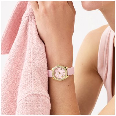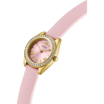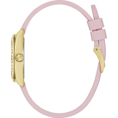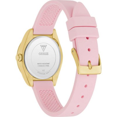 Diese Guess Uhr hat ein Edelstahl Gehäuse mit einem Durchmesser von 30 mm und ist mit einem Armband aus Kautschuk versehen. In der Uhr arbeitet ein Seiko Uhrwerk. Das Glas der Uhr besteht aus Mineral - Glas.