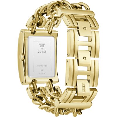 Diese Guess Uhr hat ein Edelstahl Gehäuse mit einem Durchmesser von 28 mm und ist mit einem Armband aus Metall versehen. In der Uhr arbeitet ein Seiko Uhrwerk. Das Glas der Uhr besteht aus Mineral - Glas.