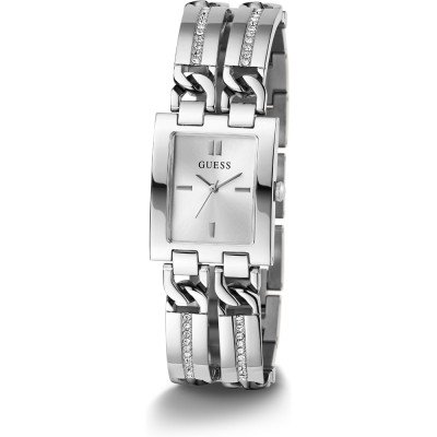 Diese Guess Uhr hat ein Edelstahl Gehäuse mit einem Durchmesser von 24 mm und ist mit einem Armband aus Edelstahl versehen.
