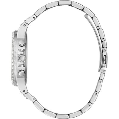 Diese Guess Uhr hat ein Edelstahl Gehäuse mit einem Durchmesser von 36 mm und ist mit einem Armband aus Edelstahl versehen. In der Uhr arbeitet ein Seiko Instruments Inc. Uhrwerk. Das Glas der Uhr besteht aus Mineral - Glas.