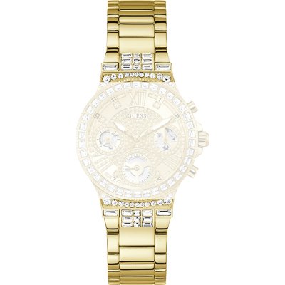 Dieses Guess Uhrarmband ist aus metall gefertigt und wird mit druckstifte an der Uhr befestigt. Das Band hat eine Breite von 20 mm und wird mit einer faltschließe mit Druckknöpfen geschlossen. Das Uhrenarmband hat keine gerade Halterung, was bedeutet, dass dieses Band nur für die unten aufgeführten Uhren geeignet ist.