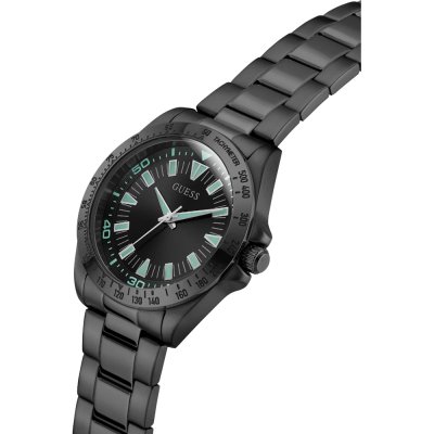 Diese Guess Uhr hat ein Edelstahl Gehäuse mit einem Durchmesser von 42 mm und ist mit einem Armband aus Edelstahl versehen. In der Uhr arbeitet ein Seiko Uhrwerk. Das Glas der Uhr besteht aus Mineral - Glas.