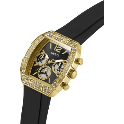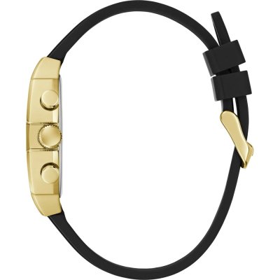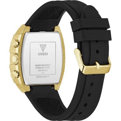 Diese Guess Uhr hat ein Edelstahl Gehäuse mit einem Durchmesser von 43 mm und ist mit einem Armband aus Kautschuk versehen. In der Uhr arbeitet ein Seiko Instruments Inc. Uhrwerk. Das Glas der Uhr besteht aus Mineral - Glas.