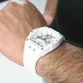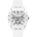Diese Guess Uhr hat ein Kunstharz Gehäuse mit einem Durchmesser von 43 mm und ist mit einem Armband aus Kautschuk versehen.