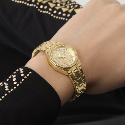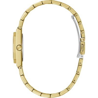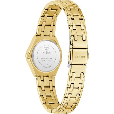 Diese Guess Uhr hat ein Edelstahl Gehäuse mit einem Durchmesser von 25 mm und ist mit einem Armband aus Edelstahl versehen. In der Uhr arbeitet ein Seiko Uhrwerk. Das Glas der Uhr besteht aus Mineral - Glas.