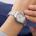 Diese Guess Uhr hat ein Edelstahl Gehäuse mit einem Durchmesser von 25 mm und ist mit einem Armband aus Edelstahl versehen. In der Uhr arbeitet ein Seiko Uhrwerk. Das Glas der Uhr besteht aus Mineral - Glas.