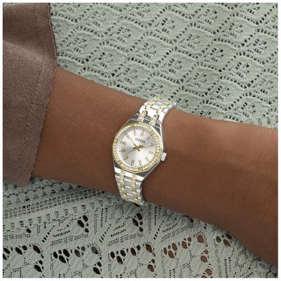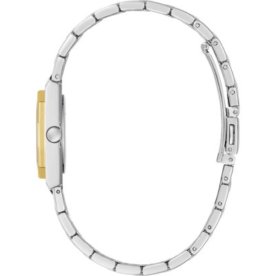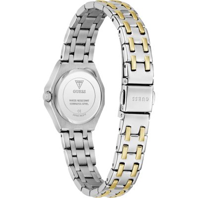Diese Guess Uhr hat ein Edelstahl Gehäuse mit einem Durchmesser von 25 mm und ist mit einem Armband aus Edelstahl versehen.