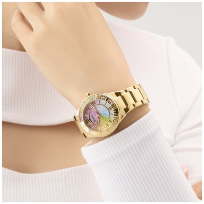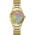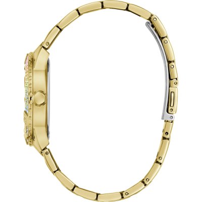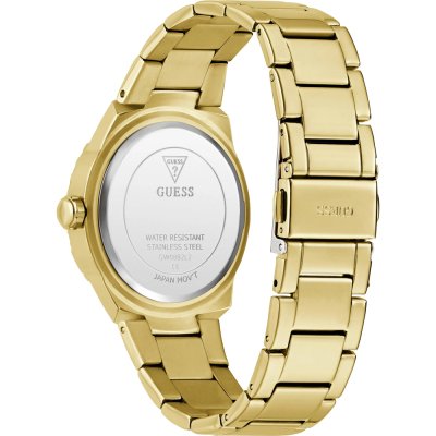 Diese Guess Uhr hat ein Edelstahl Gehäuse mit einem Durchmesser von 36 mm und ist mit einem Armband aus Edelstahl versehen.