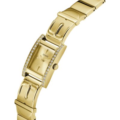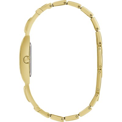Diese Guess Uhr hat ein Edelstahl Gehäuse mit einem Durchmesser von 20 mm und ist mit einem Armband aus Edelstahl versehen. In der Uhr arbeitet ein Seiko Uhrwerk. Das Glas der Uhr besteht aus Mineral - Glas.