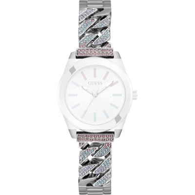 Dieses Guess Uhrarmband ist aus edelstahl gefertigt und wird mit druckstifte an der Uhr befestigt. Das Band hat eine Breite von 16 mm und wird mit einer schmuckschließe geschlossen. Das Band hat eine gerade Halterung, was bedeutet, dass dieses Band für alle Guessuhren mit einer geraden Halterung geeignet ist.