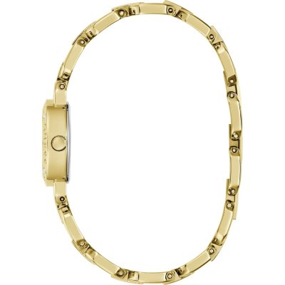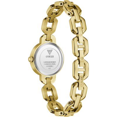Diese Guess Uhr hat ein Edelstahl Gehäuse mit einem Durchmesser von 23 mm und ist mit einem Armband aus Edelstahl versehen. In der Uhr arbeitet ein Seiko Uhrwerk. Das Glas der Uhr besteht aus Mineral - Glas.