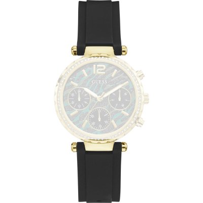 Dieses Guess Uhrarmband ist aus silikon/Kautschuk gefertigt und wird mit sattelschraube an der Uhr befestigt. Das Band hat eine Breite von 18 mm und wird mit einer dornschließe geschlossen. Das Uhrenarmband hat keine gerade Halterung, was bedeutet, dass dieses Band nur für die unten aufgeführten Uhren geeignet ist.