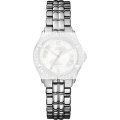 Dieses Guess Uhrarmband ist aus edelstahl gefertigt und wird mit druckstifte an der Uhr befestigt. Das Band hat eine Breite von 18 mm und wird mit einer faltschließe mit Druckknöpfen geschlossen. Das Uhrenarmband hat keine gerade Halterung, was bedeutet, dass dieses Band nur für die unten aufgeführten Uhren geeignet ist.