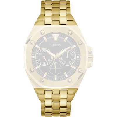 Dieses Guess Uhrarmband ist aus metall gefertigt und wird mit druckstifte an der Uhr befestigt. Das Band hat eine Breite von 28 mm und wird mit einer faltschließe mit Druckknöpfen geschlossen. Das Uhrenarmband hat keine gerade Halterung, was bedeutet, dass dieses Band nur für die unten aufgeführten Uhren geeignet ist.