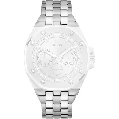 Dieses Guess Uhrarmband ist aus edelstahl gefertigt und wird mit stahlstifte an der Uhr befestigt. Das Band hat eine Breite von 28 mm und wird mit einer faltschließe mit Druckknöpfen geschlossen. Das Uhrenarmband hat keine gerade Halterung, was bedeutet, dass dieses Band nur für die unten aufgeführten Uhren geeignet ist.