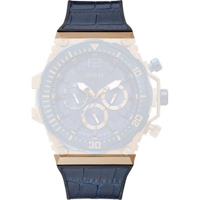 Dieses Guess Uhrarmband ist aus silikon gefertigt und wird mit druckstifte an der Uhr befestigt. Das Band hat eine Breite von 30 mm und wird mit einer dornschließe geschlossen. Das Uhrenarmband hat keine gerade Halterung, was bedeutet, dass dieses Band nur für die unten aufgeführten Uhren geeignet ist.