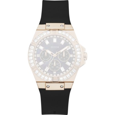Dieses Guess Uhrarmband ist aus silikon gefertigt und wird mit druckstifte an der Uhr befestigt. Das Band hat eine Breite von 24 mm und wird mit einer dornschließe geschlossen. Das Uhrenarmband hat keine gerade Halterung, was bedeutet, dass dieses Band nur für die unten aufgeführten Uhren geeignet ist.
