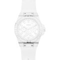 Dieses Guess Uhrarmband ist aus silikon/Kautschuk gefertigt und wird mit druckstifte an der Uhr befestigt. Das Band hat eine Breite von 24 mm und wird mit einer dornschließe geschlossen. Das Uhrenarmband hat keine gerade Halterung, was bedeutet, dass dieses Band nur für die unten aufgeführten Uhren geeignet ist.