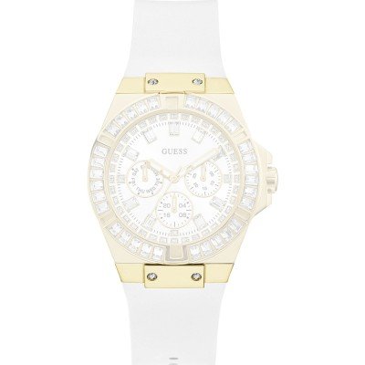 Dieses Guess Uhrarmband ist aus silikon gefertigt und wird mit druckstifte an der Uhr befestigt. Das Band hat eine Breite von 24 mm und wird mit einer dornschließe geschlossen. Das Uhrenarmband hat keine gerade Halterung, was bedeutet, dass dieses Band nur für die unten aufgeführten Uhren geeignet ist.