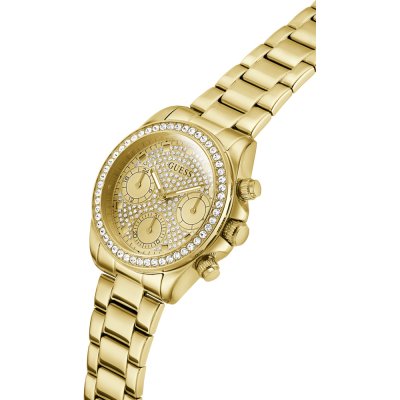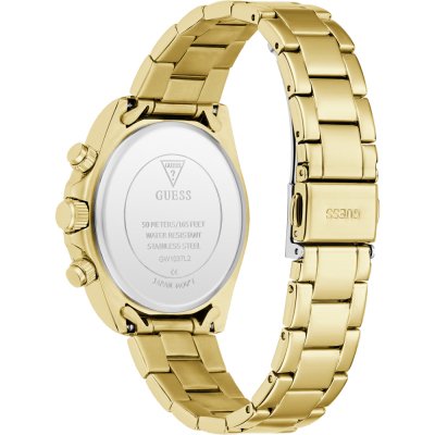 Diese Guess Uhr hat ein Edelstahl Gehäuse mit einem Durchmesser von 36 mm und ist mit einem Armband aus Edelstahl versehen. In der Uhr arbeitet ein Seiko Instruments Inc. Uhrwerk. Das Glas der Uhr besteht aus Mineral - Glas.