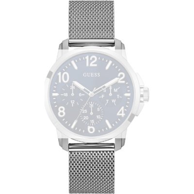Dieses Guess Uhrarmband ist aus metall gefertigt und wird mit druckstifte an der Uhr befestigt. Das Band hat eine Breite von 20 mm und wird mit einer mailänder schließe geschlossen. Das Uhrenarmband hat keine gerade Halterung, was bedeutet, dass dieses Band nur für die unten aufgeführten Uhren geeignet ist.