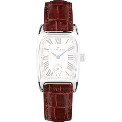 Dieses Hamilton Uhrarmband ist aus leder gefertigt und wird mit quick release Federsteg an der Uhr befestigt. Das Band hat eine Breite von 16 mm und wird mit einer dornschließe geschlossen. Das Band hat eine gerade Halterung, was bedeutet, dass dieses Band für alle Hamiltonuhren mit einer geraden Halterung geeignet ist.