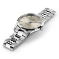 Diese Hamilton Uhr hat ein Edelstahl Gehäuse mit einem Durchmesser von 40 mm und ist mit einem Armband aus Edelstahl versehen. In der Uhr arbeitet ein ETA Uhrwerk. Das Glas der Uhr besteht aus Einfaches reflektionsfreies Saphirglas - Glas.