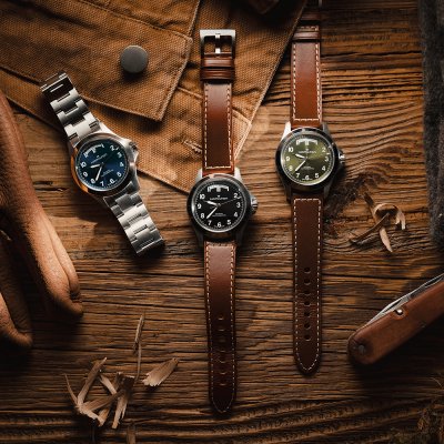 Diese Hamilton Uhr hat ein Edelstahl Gehäuse mit einem Durchmesser von 40 mm und ist mit einem Armband aus Leder versehen. In der Uhr arbeitet ein ETA Uhrwerk. Das Glas der Uhr besteht aus Einfaches reflektionsfreies Saphirglas - Glas.