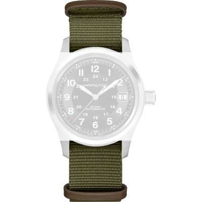 Dieses Hamilton Uhrarmband ist aus textil gefertigt und wird mit keine an der Uhr befestigt. Das Band hat eine Breite von 20 mm und wird mit einer dornschließe geschlossen. Das Band hat eine gerade Halterung, was bedeutet, dass dieses Band für alle Hamiltonuhren mit einer geraden Halterung geeignet ist.