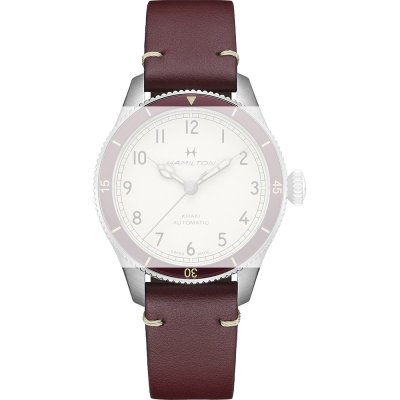 Dieses Hamilton Uhrarmband ist aus leder gefertigt und wird mit druckstifte an der Uhr befestigt. Das Band hat eine Breite von 18 mm und wird mit einer dornschließe geschlossen. Das Band hat eine gerade Halterung, was bedeutet, dass dieses Band für alle Hamiltonuhren mit einer geraden Halterung geeignet ist.