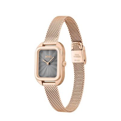 Diese Hugo Boss Uhr hat ein Edelstahl Gehäuse mit einem Durchmesser von 25 mm und ist mit einem Armband aus Edelstahl versehen. In der Uhr arbeitet ein Seiko Instruments Inc. Uhrwerk. Das Glas der Uhr besteht aus Mineral - Glas.