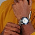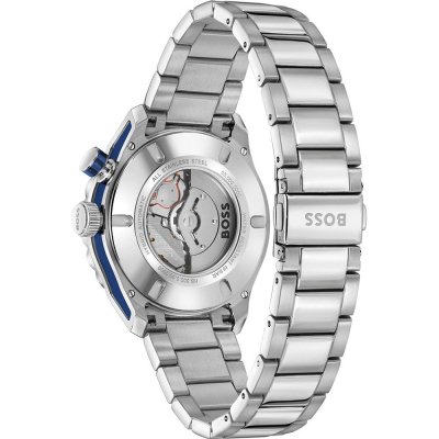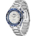Diese Hugo Boss Uhr hat ein Edelstahl Gehäuse mit einem Durchmesser von 42 mm und ist mit einem Armband aus Edelstahl versehen. In der Uhr arbeitet ein Seiko Instruments Inc. Uhrwerk. Das Glas der Uhr besteht aus Mineral - Glas.