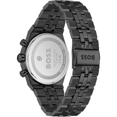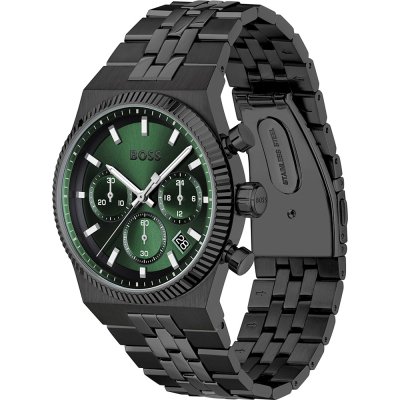 Diese Hugo Boss Uhr hat ein Edelstahl Gehäuse mit einem Durchmesser von 41 mm und ist mit einem Armband aus Edelstahl versehen. In der Uhr arbeitet ein Seiko Instruments Inc. Uhrwerk. Das Glas der Uhr besteht aus Mineral - Glas.