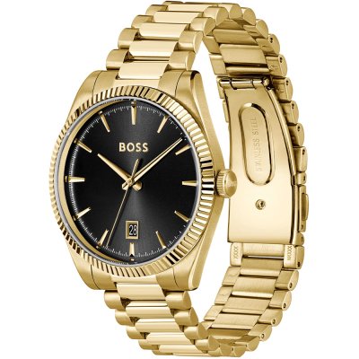 Diese Hugo Boss Uhr hat ein Edelstahl Gehäuse mit einem Durchmesser von 40 mm und ist mit einem Armband aus Edelstahl versehen.