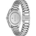 Diese Hugo Boss Uhr hat ein Edelstahl Gehäuse mit einem Durchmesser von 40 mm und ist mit einem Armband aus Edelstahl versehen.