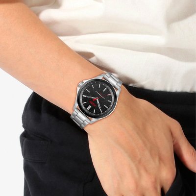 Diese Hugo Boss Uhr hat ein Edelstahl Gehäuse mit einem Durchmesser von 42 mm und ist mit einem Armband aus Metall versehen. In der Uhr arbeitet ein Miyota Uhrwerk. Das Glas der Uhr besteht aus Mineral - Glas.
