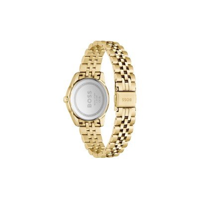 Diese Hugo Boss Uhr hat ein Edelstahl Gehäuse mit einem Durchmesser von 32 mm und ist mit einem Armband aus Edelstahl versehen. In der Uhr arbeitet ein Miyota Uhrwerk. Das Glas der Uhr besteht aus Mineral - Glas.