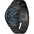 Diese Hugo Boss Uhr hat ein Edelstahl Gehäuse mit einem Durchmesser von 44 mm und ist mit einem Armband aus Edelstahl versehen. In der Uhr arbeitet ein Seiko Instruments Inc. Uhrwerk. Das Glas der Uhr besteht aus Mineral - Glas.