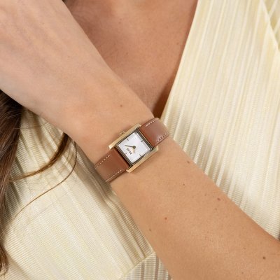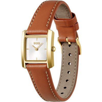 Diese Hugo Boss Uhr hat ein Edelstahl Gehäuse mit einem Durchmesser von 26 mm und ist mit einem Armband aus Leder versehen.