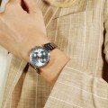 Diese Hugo Boss Uhr hat ein Edelstahl Gehäuse mit einem Durchmesser von 36 mm und ist mit einem Armband aus Edelstahl versehen. In der Uhr arbeitet ein Miyota Uhrwerk. Das Glas der Uhr besteht aus Mineral - Glas.