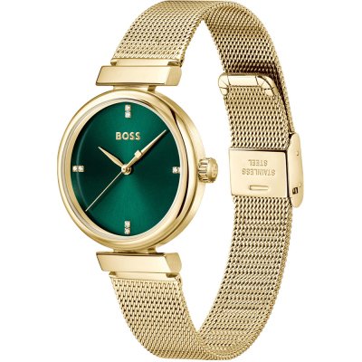 Diese Hugo Boss Uhr hat ein Edelstahl Gehäuse mit einem Durchmesser von 32 mm und ist mit einem Armband aus Edelstahl versehen.