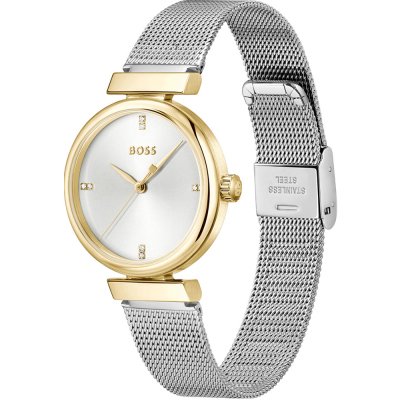 Diese Hugo Boss Uhr hat ein Edelstahl Gehäuse mit einem Durchmesser von 32 mm und ist mit einem Armband aus Edelstahl versehen.