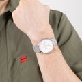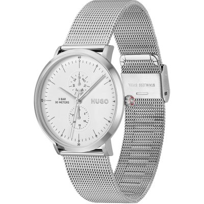 Diese Hugo Boss Uhr hat ein Edelstahl Gehäuse mit einem Durchmesser von 40 mm und ist mit einem Armband aus Edelstahl versehen. In der Uhr arbeitet ein Seiko Instruments Inc. Uhrwerk. Das Glas der Uhr besteht aus Mineral - Glas.